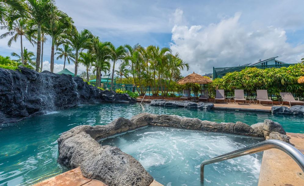 This unit is a ground floor extra- large studio with full kitchen at the Cliffs at Princeville Resort. The Cliffs at Princeville Resort is nestled on a secluded bluff overlooking the Majestic North Shore of Kauai. The unit is steps away from on-site amenities which are included in the rental. A swimming pool, 2 Hot Tubs for adults, Putting Green, Tennis, Basketball, Shuffleboard, Exercise Room and on-site bike rentals. Grill out & lounge in the chairs along the ocean’s edge.