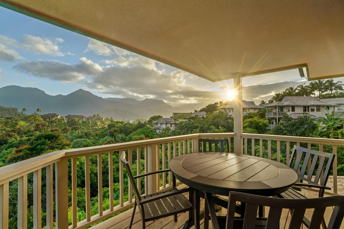 The ultimate vacation in paradise! Ocean and Na Pali mountain views with beach access await! Our home features Hypoallergenic shower and soap products for a gentle, skin-friendly experience. Enjoy a modern kitchen with updated countertops, cabinets, and tile work, plus a spacious, air-conditioned living area. Centrally located in Princeville, perfect for remote workers, friends, and families. Minutes from Hanalei Bay, Queens Bath, and top golf, Kauai is at your fingertips. Stay in paradise!