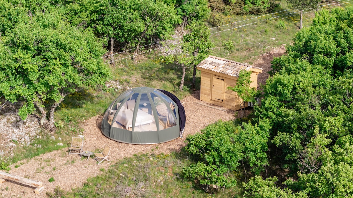" La géode perchée " Aussi sur Google. Connectez vous à la nature le temps d'un séjour insolite dans notre belle géode posée sur une grande terrasse en bois à 3 m du sol au milieu des arbres en sud Ardèche, 3 km du centre de Les Vans - Face aux vignes et la montagne lointaine , profitez de votre jacuzzi à volonté ! - Voyagez léger, draps et serviettes de toilettes fournis - Le petit déjeuner 10€/pers/jour sera payé sur place, GRATUIT si séjour réservé sur google ou LBC A bientôt " Christian