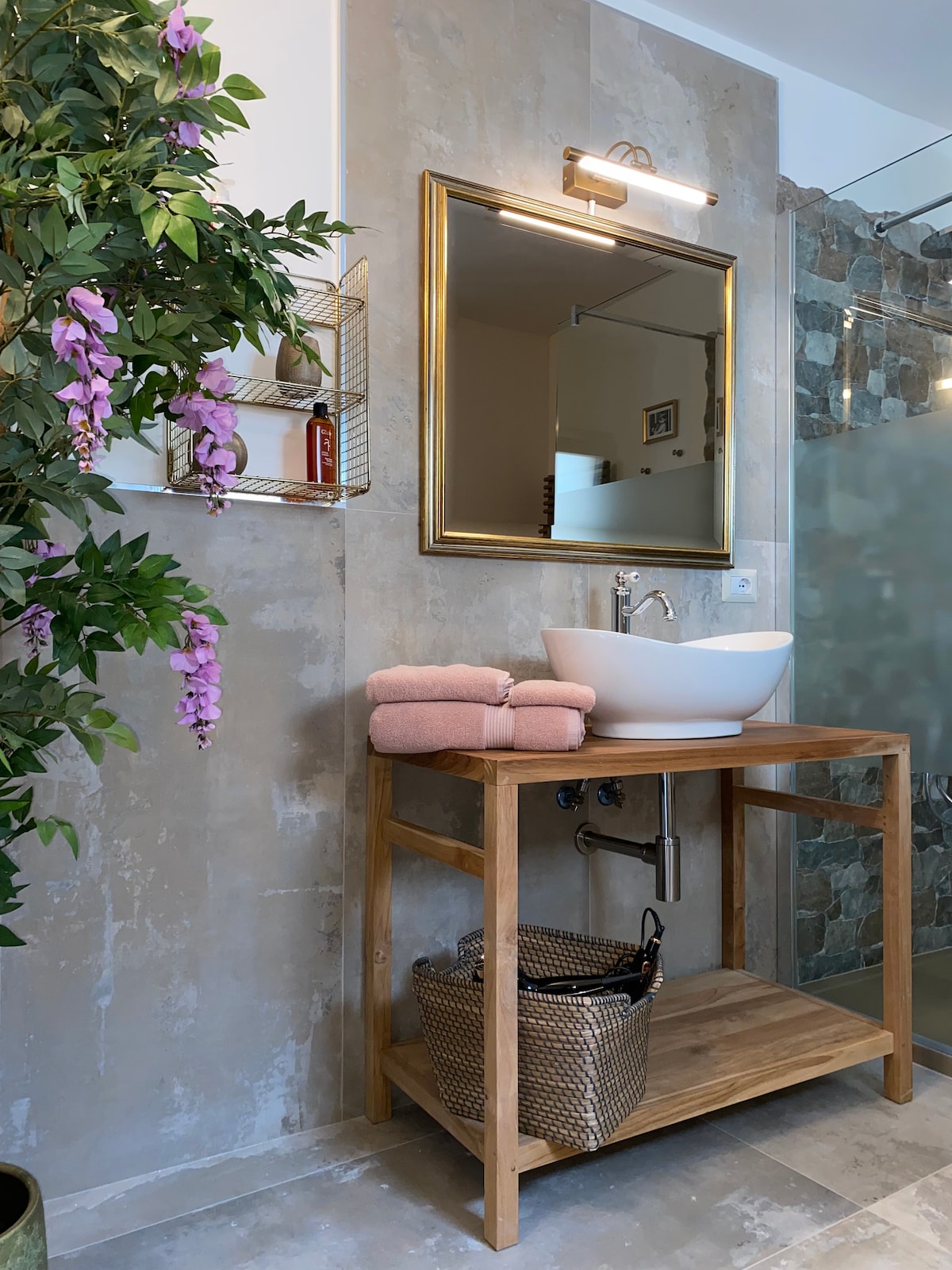 Stunning renovated spacious luxury one bedroom 2nd floor apartment 55 m2, with high ceilings, stone floors and panoramic rooftop terrace with exceptional views of the town and sea in quiet and location. The spacious bedroom has a king size bed with a quality 22 cm mattress ( 180 x 200 ) and private balcony. The sitting room has a small winter kitchen with hob and a small fridge. The rooftop kitchen is fully equipped on the upper level accessible with a staircase.Casa Mima in same building