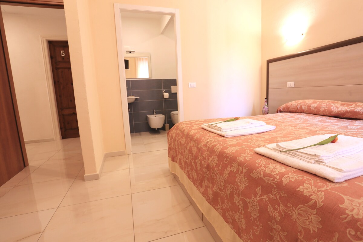 Double room, private bathroom ( with shower and hairdryer!) Inside the room you can find TV color, air conditionair and internet wi-fi free. The apartment is located in front of the central station of La Spezia, in just 8 minutes by train you can reach Riomaggiore, the first of the 5 Terre. With only 20 minutes by bus or car you can reach the beautiful village of Lerici and Portovenere . The pedestrian center area with shops and restaurants and supermarket is 5 minutes walk from us.