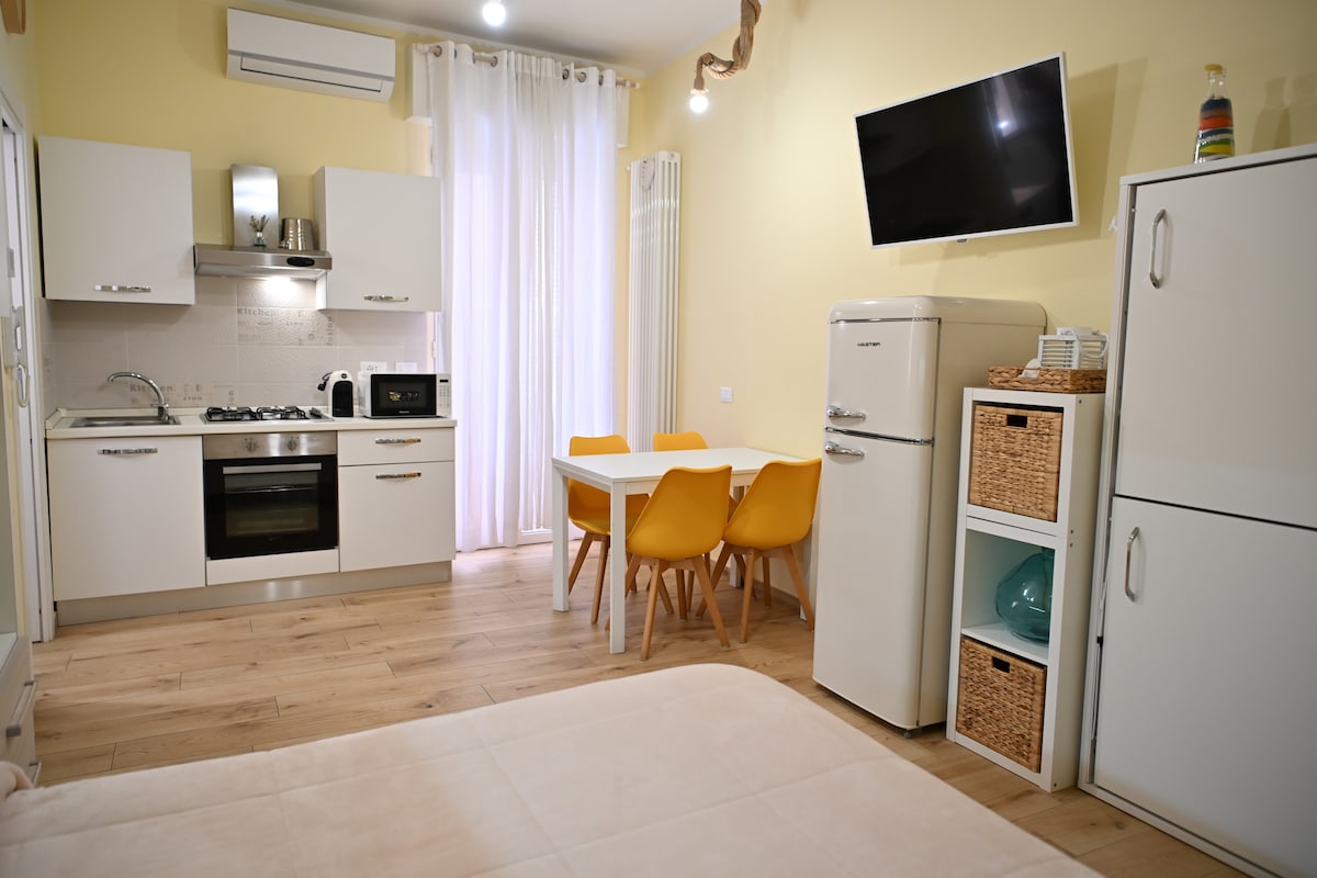 Appartamento completamente ristrutturato con mobili e arredi nuovi. Entrata con atrio e armadio a tre ante. Camera da letto con aria condizionata e riscaldamento, letto matrimoniale, vista mare e como con specchio e cassetti. Lounge vista mare con aria condizionata e riscaldamento, cucina totalmente attrezzata, tavolo da pranzo, comodissimo divano letto matrimoniale e Smart Tv Full HD 40 pollici. Bagno vista mare con cabina doccia e lavatrice. L'appartamento si trova in zona centralissima.