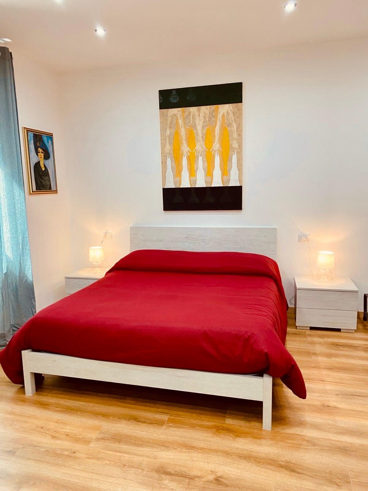 La camera Ulivo, ristrutturata nel 2020, è indipendente dal resto dell'appartamento. E' dotata di ogni comfort: aria condizionata, termosifoni, letto large con cassetti, scrivania, armadio open, panca per valigie, TV 32", specchio, bagno privato con doccia grande, fon, piastra capelli, macchina caffè, bollitore per te e tisane, terrazzino per colazione all'aperto, mini-frigobar completo. Camera con serratura.