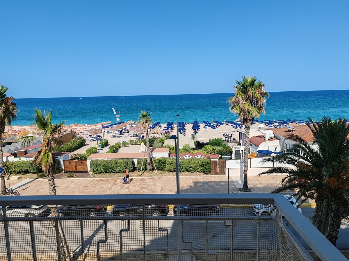 Delizioso appartamento con grande terrazza vista mare, piscina, e garage privato. Terzo piano con ottima ventilazione incrociata. Adatto anche per famiglie con bambini per la posizione e per l organizzazione della casa. Spiaggia libera di fronte all'appartamento, o stabilimento balneare a pochi metri. Piccoli negozi e supermercati raggiungibili a piedi. / kids friendly apartment with sea view, swimming pool, and garage. You can forget your car and enjoy the nice village.