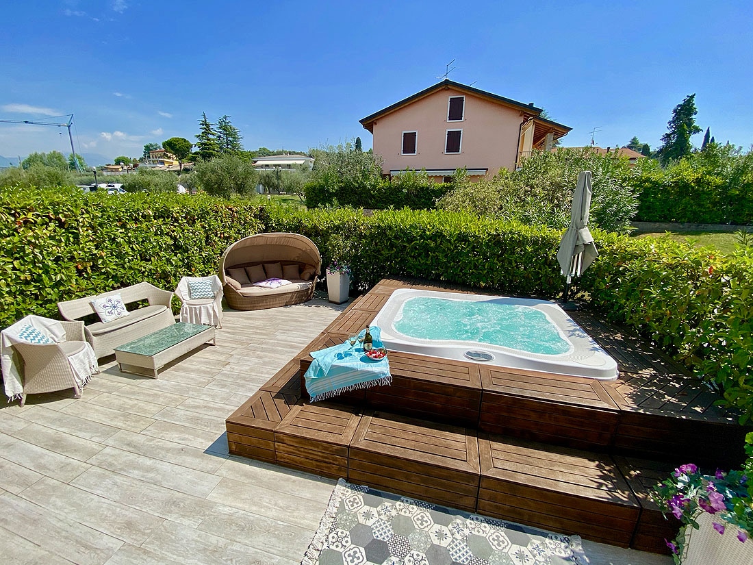 Welcome to our beautiful Villa Adele. Modern and fully air-conditioned house in Bardolino on Lake Garda, with private garden and exclusive Jacuzzi Mini Piscina whirlpool and swimming pool in the residential complex. You can expect custom-made Italian designer furniture, decorated with tasteful works of art. The house is equipped with a modern water softening system. Modern alarm system, safe and outdoor video surveillance. C. S.: IP0230060293 023006-LOC-00602 CIN: IT023006B4YCXN2O5O