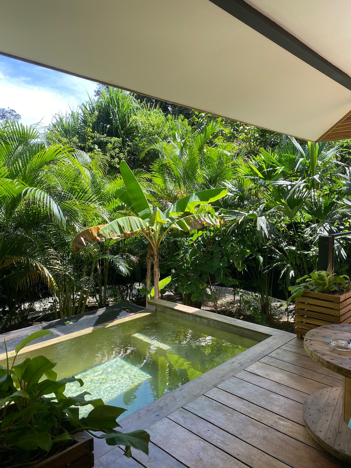 Bassin privé sur la grande terrasse de ce logement individuel et élégant, spécialement conçu pour 2 personnes, dans un environnement intime et sans vis à vis. Pura Vida ! Nous vous proposons également la Casa Tucan offrant les mêmes prestations si la casa Kukula est indisponible. (https://air.tl/3KDPYxid)