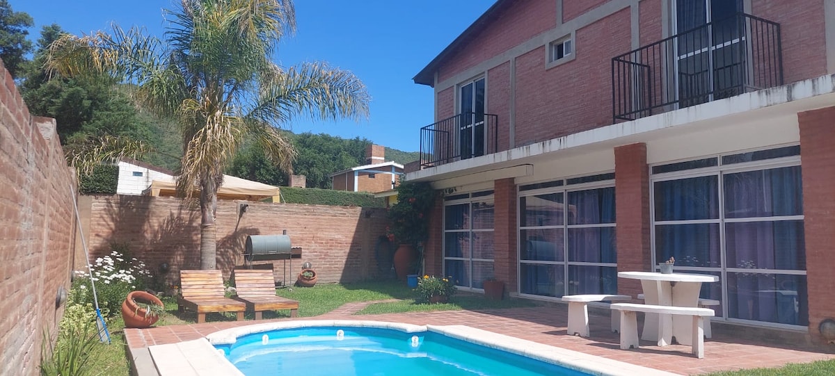 Estupenda mansion de 200m2, a solo 2 km del cerro Uritorco, posee un jardín de 2000m2 y una piscina con filtro de agua.Esta ubicada sobre una loma, que permite tener una vision del cerro Uritorco, unica en Capilla del monte. Por dentro goza de todo el confort, desde television, WIFI con muy buena señal, baños modernos, con ducha. En temporada alta solo se aceptan reservas de 4 huéspedes como mínimo.