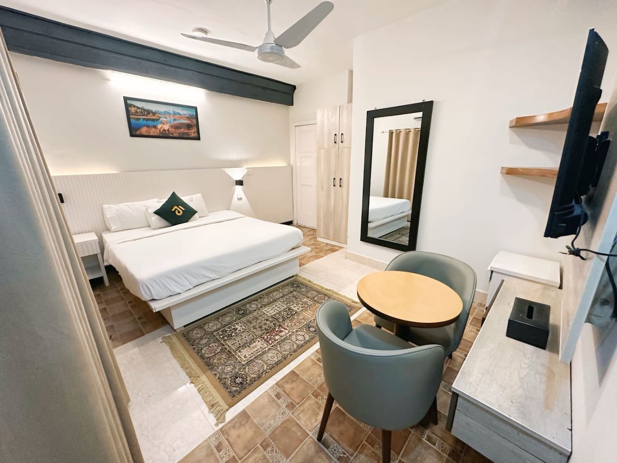 Stay in comfort and style at Green View Residency Islamabad. Featuring elegant bedrooms with attached bathrooms, a lush green lawn, secure and free guest parking, and 24/7 attentive staff, it’s ideal for families, business travelers, diplomats, and tourists seeking a premium, peaceful, and convenient stay in the city center peaceful place to stay.