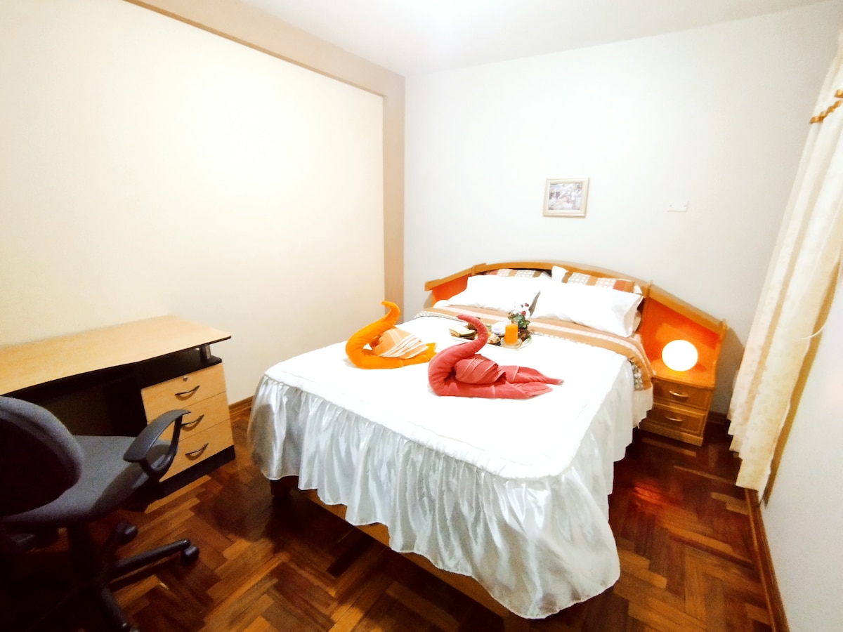 Lindo mini departamento con entrada independiente sala comedor TV y Netflix cocina que cuenta con lo necesario,wifi de alta velocidad . Recojo en auto gratuito del terminal terrestre o zonal en Puno. Realizamos recojo en aeropuerto de Juliaca con un costo adicional.