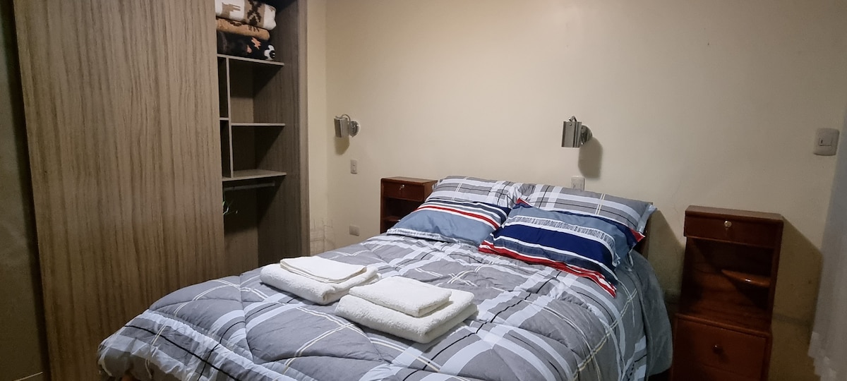 Mini departamento acogedor, tranquilo e independiente en el primer piso de nuestra casa. Cuenta con una habitación amplia con dos camas de plaza y media, cocina equipada, comedor, baño privado con agua caliente y wifi. Está ubicado en una zona silenciosa, segura y con hermosa vista al lago, a solo 15 minutos caminando (o 5 en taxi) de la plaza de armas. Ideal para descansar después de explorar la ciudad y sus alrededores.