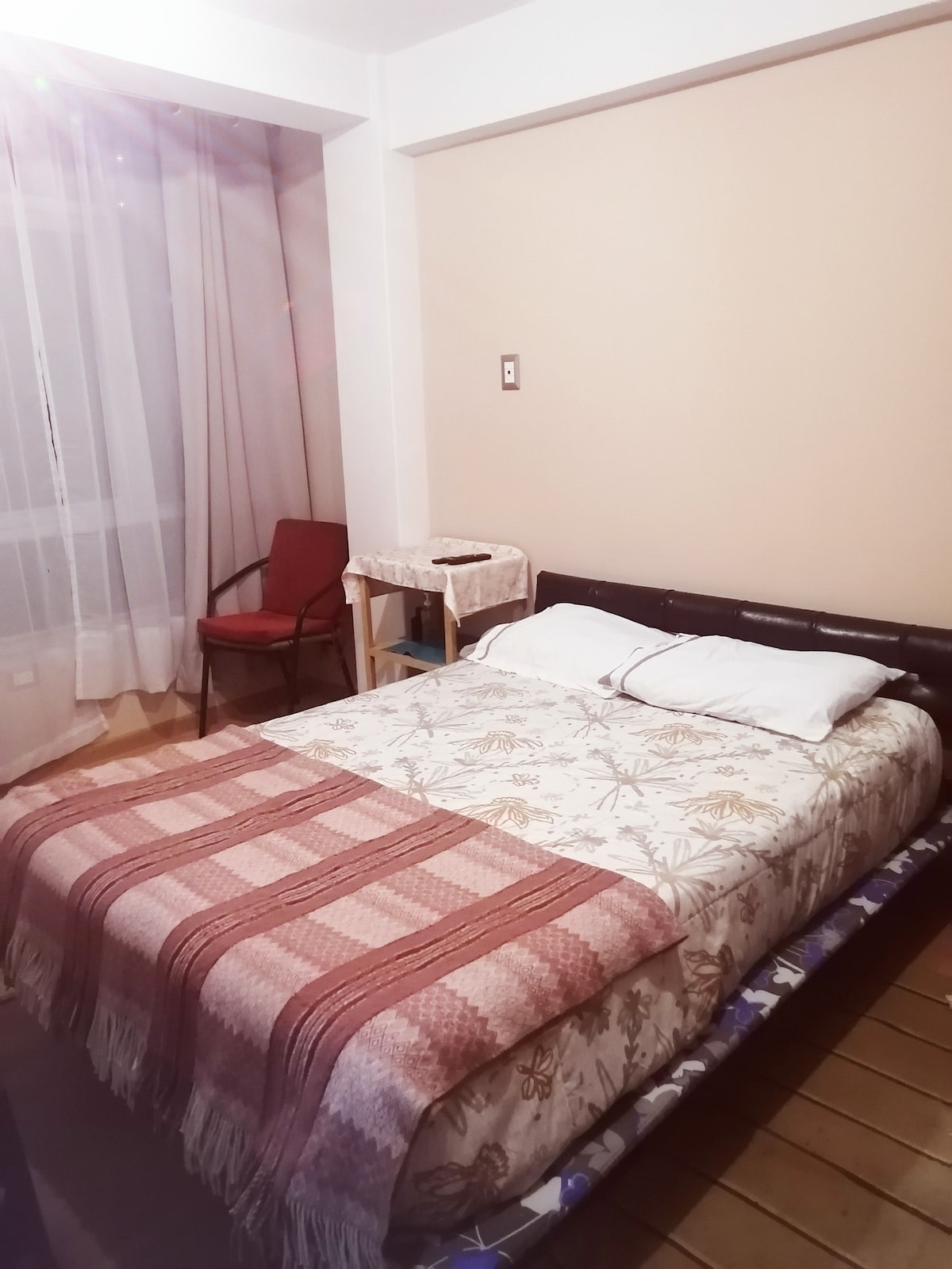 Disfruta de la sencillez de este alojamiento tranquilo y céntrico. Con vista al lago Titicaca, se encuentra ubicado cerca del mercado Laykakota y a pocos minutos de principales lugares turísticos de la ciudad de Puno. Descripción del Departamento: Cuenta con una habitacione, un espacio de sala - comedor, un cocina y un baño privado que cuenta con ducha de agua caliente.
