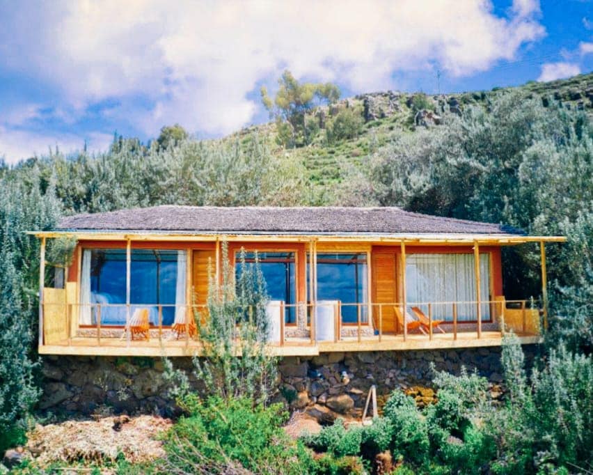 面向的的喀喀湖的小屋