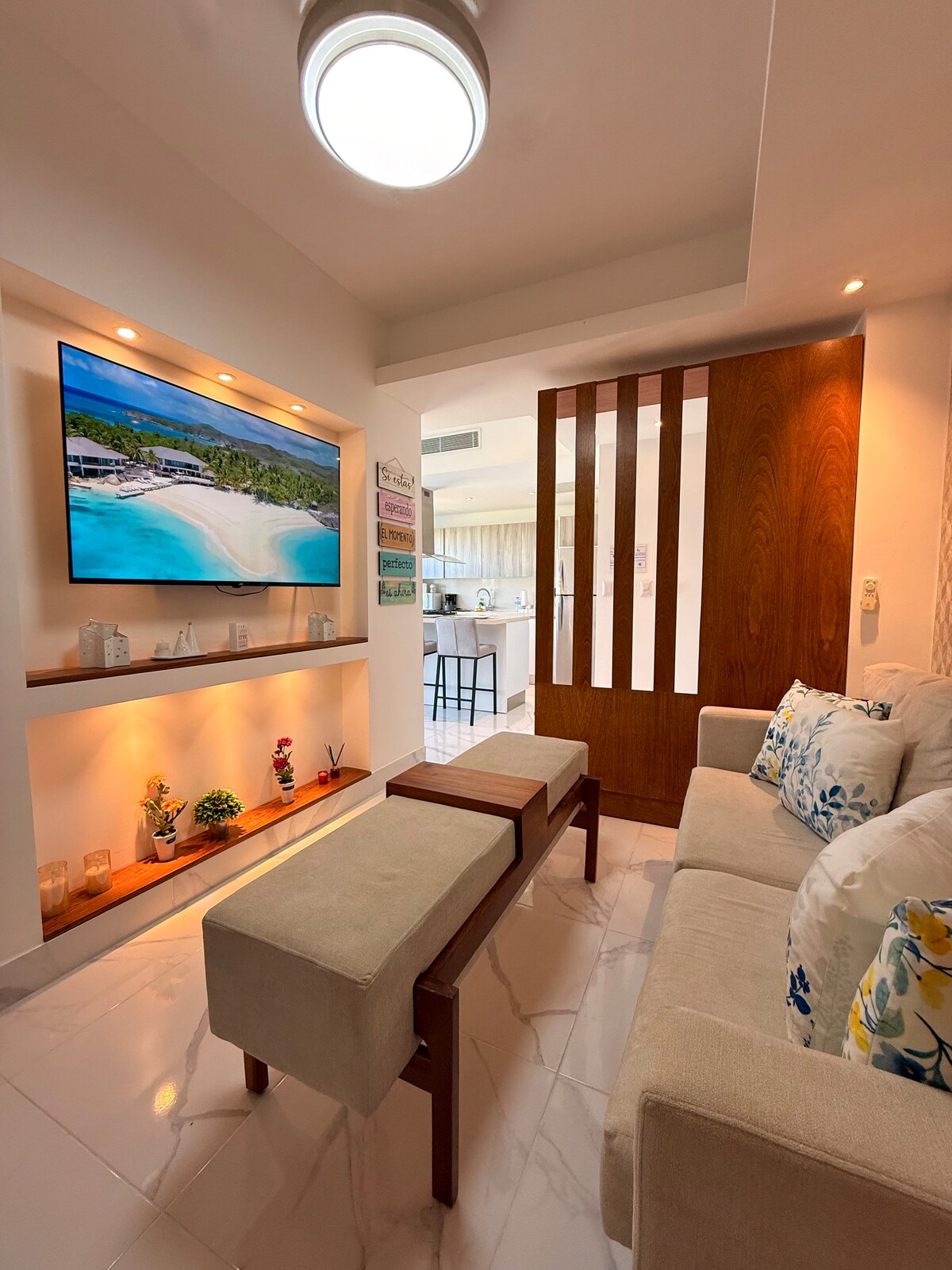 Enjoy a stylish and luxurious experience at this centrally-located apartment in Punta Cana Village, a private, gated community. Located just 5 minutes from the airport, you are within walking distance to delicious restaurants, malls, and supermarkets. The apartment is fully furnished and equipped to offer you a comfortable and relaxing stay. With a luxurious decor and equipped with everything you need, this is a perfect place to enjoy everything Punta Cana has to offer. Come and enjoy your stay!