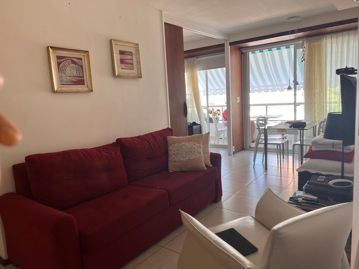 Precioso apartamento con vistas al mar a 120 metros de la playa, 1 dormitorio, living, baño, cocina y balcon, totalmente equipado y super comodo. El edificio cuenta con piscina climatizada interior con un jacuzzi , gimnasio, recepcion, dos piscinas exteriores y parrillero , un parrillero en la terraza con vista a la playa Mansa y la Brava y tambien parking. En una zona llena de restaurantes, mercados y mas. 😊