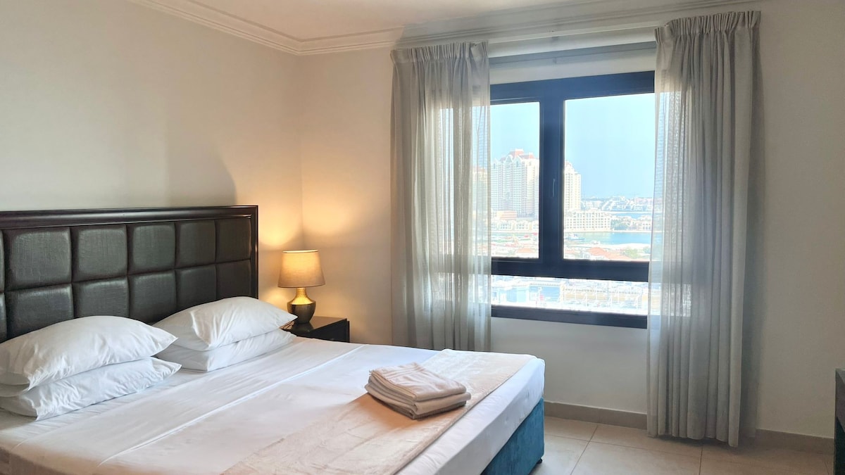 Step into the luxurious 1BR apartment nestled on the spectacular Pearl of Doha island, close to many restaurants, shops, and exciting attractions. Explore the magnificent Doha or lounge the day on the private balcony, featuring breathtaking views that will make you want to stay forever. ✔ Comfortable King Bedroom ✔ Open Design Living ✔ Fully Equipped Kitchen ✔ Private Balcony ✔ Smart TV ✔ High-Speed Wi-Fi ✔ Building Amenities (Pools, Hot Tub, Play Area, Gym, Free Parking) See more below!