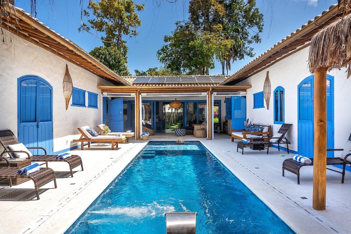 Casa Agua-viva is located in the heart of the iconic Quadrado in Trancoso. The house is part of a private, 24hr secured condo with a pool. This is one of the few locations where you have DIRECT access to the Quadrado- right outside the secure gate. No need for a car or long walks home from your night out. This is a gorgeous, fully equipped home, offering comfort with elegance and all the infrastructure to provide a unique experience in this place of indescribable beauty.