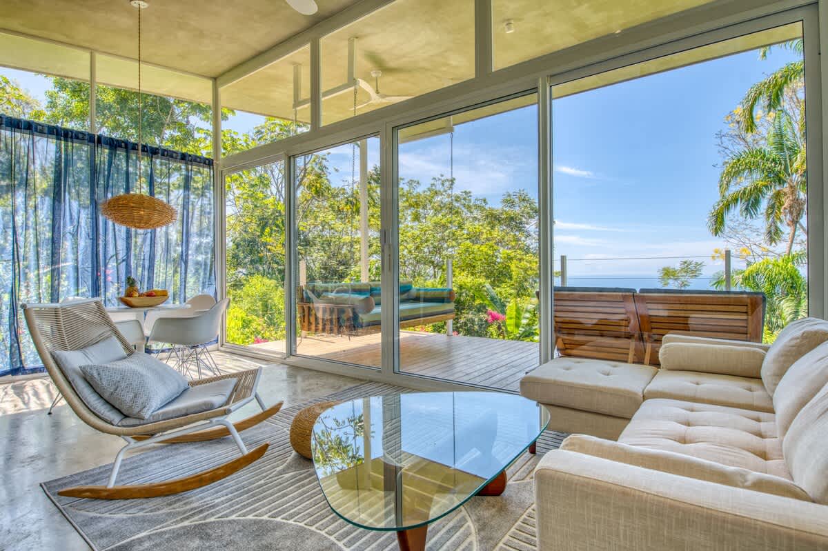 The Suave Vida Getaway Guesthouse offers you its openness with window walls and valley views surrounded in Costa Rican Nature at its purest. You will feel emerged to the views of the valley in a comfortably spacious open space enriched with stylish furniture and décor themed to bring raw elements of nature inside the living area. You will find yourself in tranquility with the sounds of nature and the running streams.