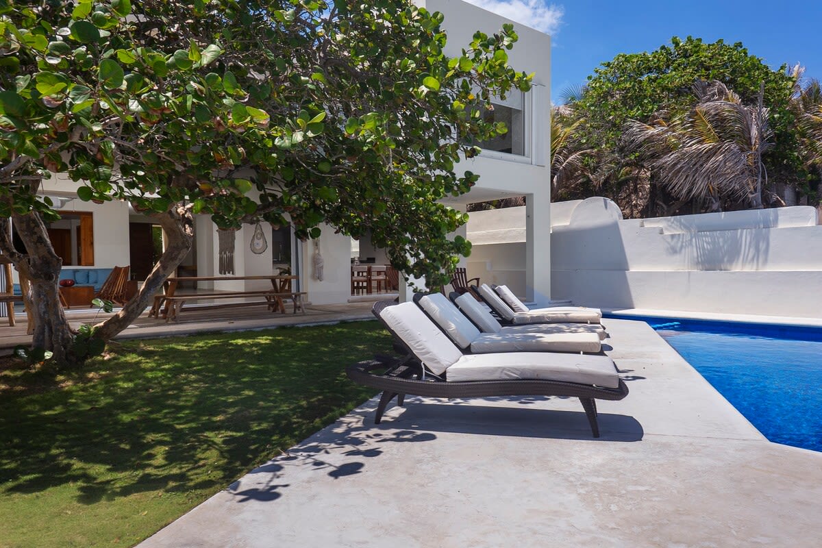 Live the experience of staying in a house facing the Caribbean Sea. With a large and heated pool you have direct access to the beach where, in season, you will see turtles that lay hundreds of eggs, right there in our yard. From the kitchen, its balcony as its three bedrooms will delight you with the sunrise and the moonrise. The large palapa at the roof offers unlimited views of the sea from the east to west and a spectacular sunset. In this house you will have memories that will last forever.