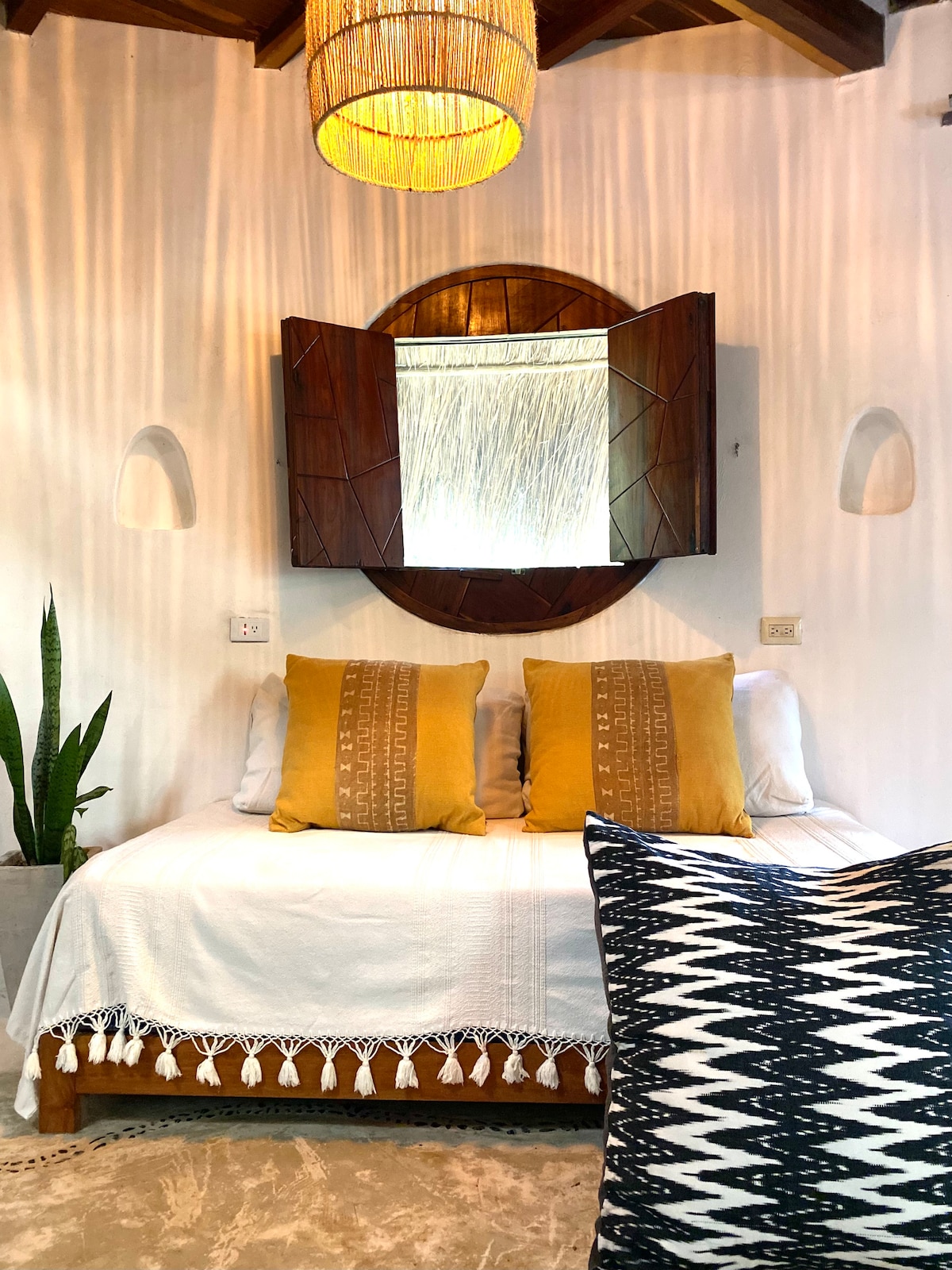 LAKEFRONT SECLUDED HIDEAWAY WITH PRIVATE ACCESS to LAGUNA BACALAR- Escape to your own private oasis .! Our Cabaña is the ultimate hideaway, nestled at the end of our spacious gardens and completely hidden from view. With just three villas on our 500 feet of lakefront, you'll feel like you have the entire lake to yourself. Inside, is a full size bedroom and a double futon in the living area. The kitchen fully equipped. Air conditioning. Great internet. Plus a private patio.
