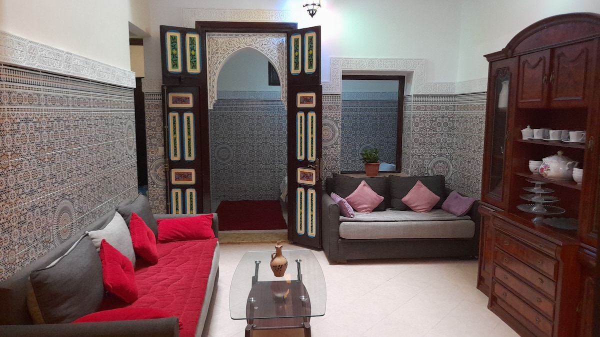 un Riad traditionnel situé dans la médina de salé ( immerssion dans la vie locale ) très calme , parking gardé à proximité,wifi TV avec chaines europeennes gratuits) , à quelques pas de la marina et plage de salé , des restaurants , de RABAT. cuisine équipée, lave linge, lave vaisselle , TV , vaisselle et draps serviettes fournis , LIT bébé. terrasse équipée avec petite vue sur océan , à proximité de la station de tramway .