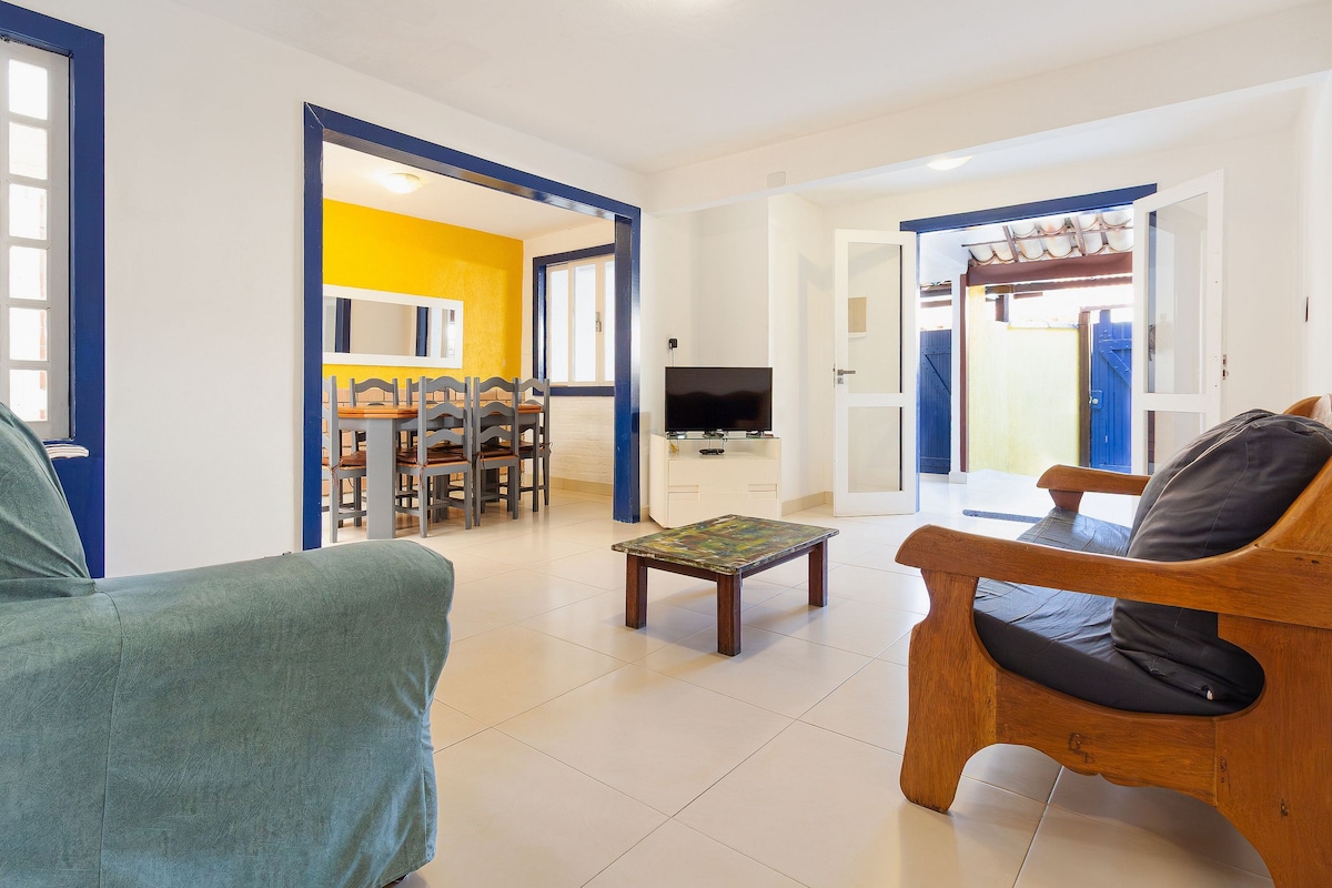 Located 800 m from Ferradura Beach and Rua das Pedras, the house is ideal for couples seeking tranquility, comfort, and a great location. It features a bedroom with air conditioning, balcony with deck, living room, kitchen for light meals, covered barbecue, Smart TV, Wi-Fi, bathroom, outdoor shower, parking, and a charming outdoor area. A calm and pleasant place to relax after the beach or a walk downtown.