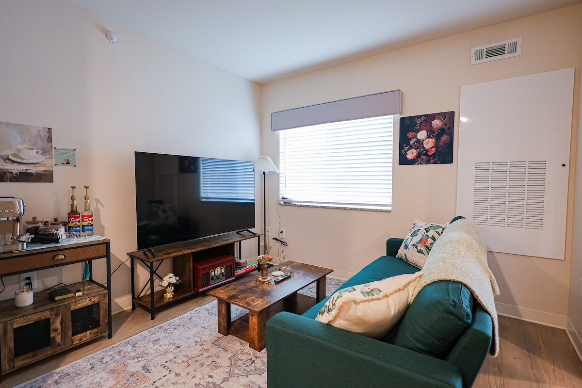 The newly renovated space is designed for travelers who do not mind a smaller space with a clean and minimalist design, PLUS an insulated garage door you can open on sunny days! Park next to the entrance, plug in your EV charger, and take a short stroll to restaurants, museums, and concert venues. Also, if you are traveling with a bigger group the attached house offers space for up to six guests. Traveling to Raleigh to look for a home to buy? Your stay could be FREE contact us for details!