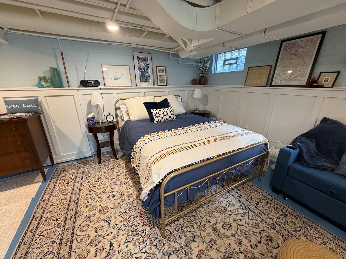 Beautiful, sunny basement studio apt with a queen and twin, parking and a new Viking HOT TUB. Very safe neighborhood! Enjoy the midcentury modern vibe with antique touches and laundry! Relax in the lovely private garden, & walk two blocks to charming Highland Village that has everything. We're centrally located between St. Paul and Mpls. Close to airport, Mall of America, U of St. Thomas, St. Catherines & Macalester. I do have two cats, but they rarely go downstairs. Light footsteps at times.