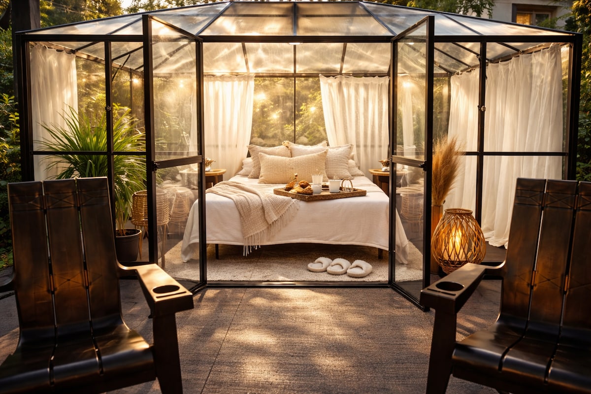 A 1920s cottage on 1.2 wooded acres, just north of the Twin Cities. 15 minutes from downtown Minneapolis or St. Paul, but it feels a world away. Fireside sitting room, sunroom with a hanging swing and sunrise views, full kitchen, and a glass-walled backyard studio. Outside: fire table, hot tub, sauna and string lights on the deck. Sleeps 10. Built for getaways, friend trips, and anyone who could use a good exhale. Come rest.