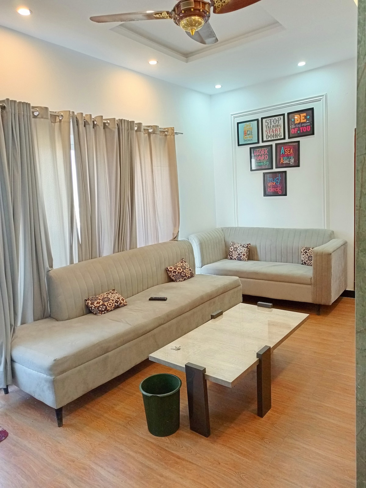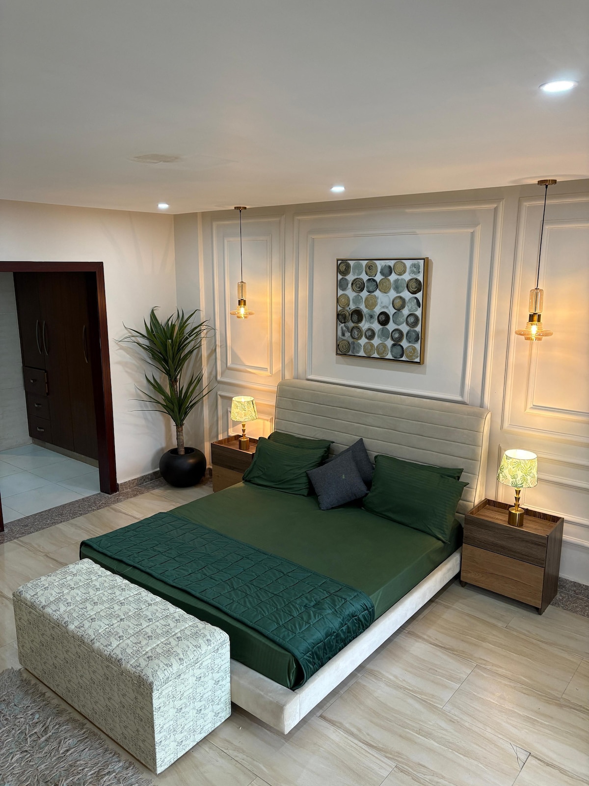 No other rental beats this lavish, Centrally located, secure & immersed in serenity beautifully designed & tastefully furnished independent 3 bedrooms residence with private entrance & parking for families, business travelers & anyone looking for a Royal luxury Home @ Central Location. Soak up the modern & vintage charm of this Royal brand new villa. Extraordinarily lavish designer furnishing, spacious rooms, greenery, spectacular views & workplace. Large beautiful garden to host gatherings.
