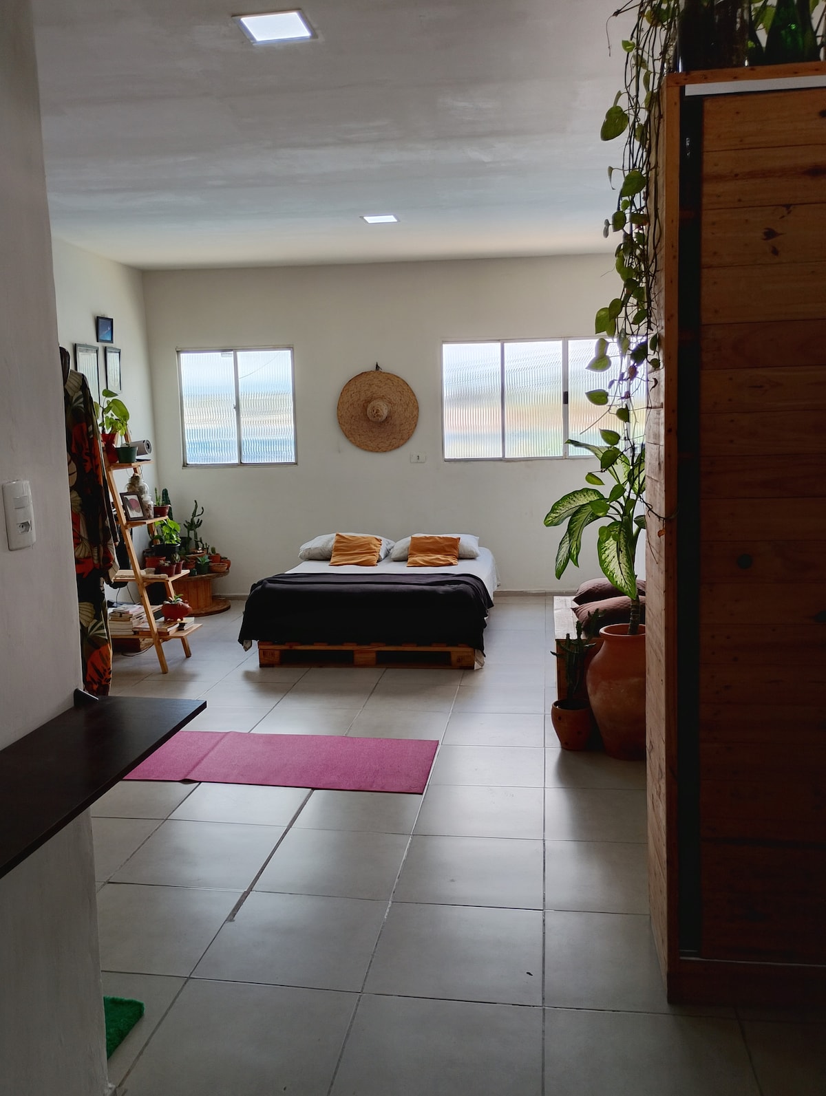 Espaço bem equipado com suíte. Possui ar condicionado, tv smart,frigobar,cama de casal e escrivaninha. Cozinha externa compartilhada, equipada com fogão, geladeira, mesa, cafeteira, sanduicheira, dentre outros. Tem churrasqueira com área aberta para lazer. A cozinha é bem equipada com o necessário para preparar suas refeições. O ambiente é tranquilo, familiar e muito bem localizado. Próximo ao aeroporto dos Guararapes, centro da cidade, cidade universitária, Boa Viagem, Olinda...