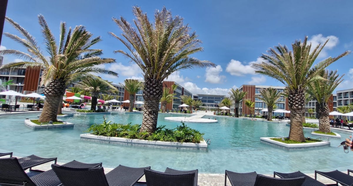 Curta uma experiência luxuosa ao ficar neste lugar especial.quarto com cama de casal e sala com sofá cama pra 2 pessoas,tv e ar condicionado em todos os cômodos,Resort novo e de altíssima qualidade,são várias piscinas para desfrute de sua família,pé na areia com piscinas naturais e passeios incríveis