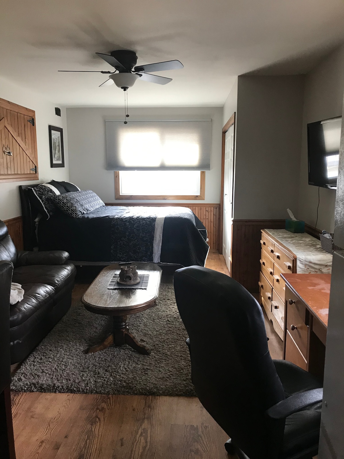 Ideal for workers or conference attendees, we welcome you to make our lower-level dedicated living space your home away from home. Dedicated lower level is accessed through shared front entrance to our home & open stairway. We live on the main floor. You'll have your own bright private locking bedroom & private bath. Bar-style kitchenette, eating area & large living room with tv are all yours in this spacious accommodation, with access to shared laundry. (Check our 2 br listing for 2 rooms)