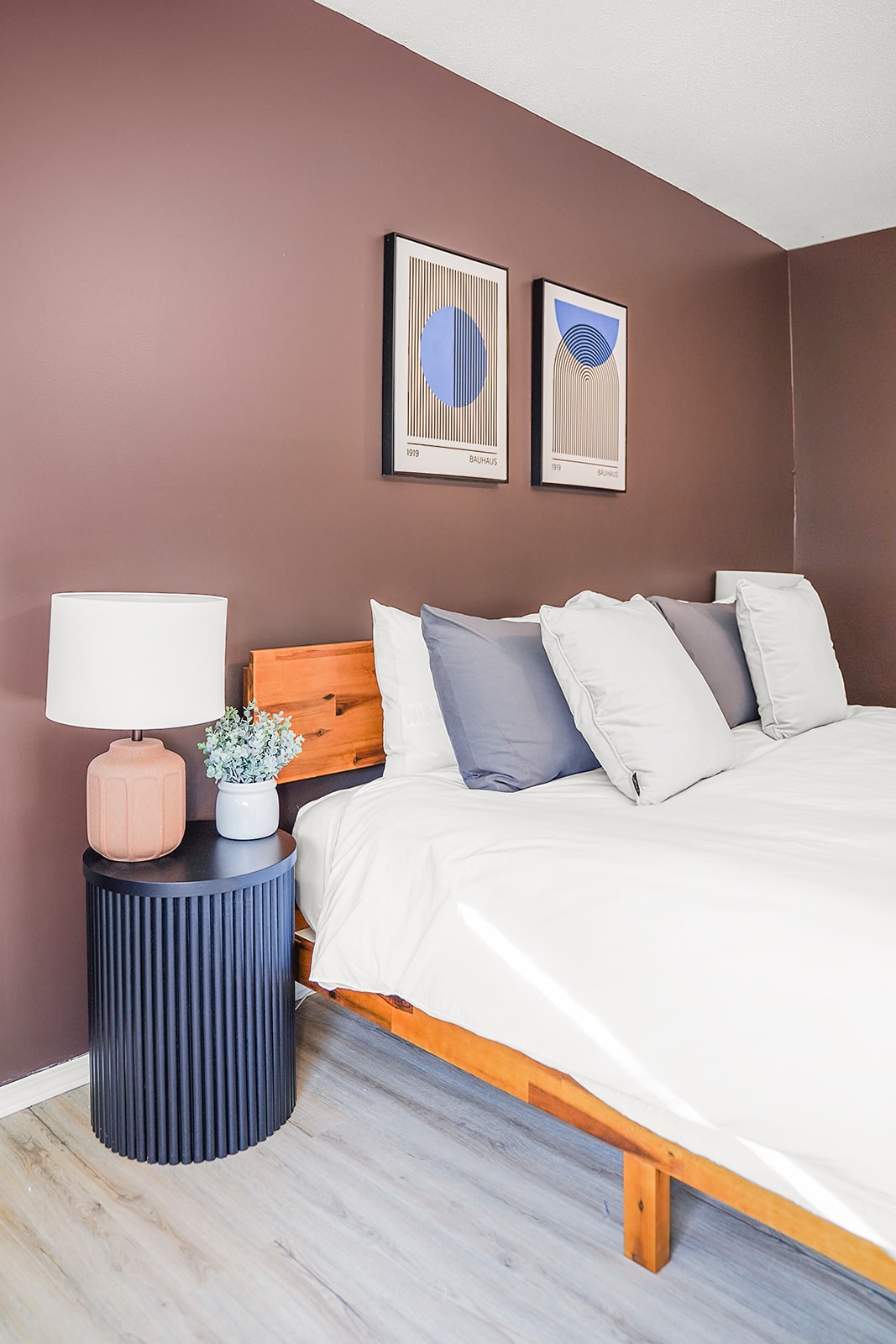 Kick back & relax in our beautiful guest suite, perfect for couples and business travelers. Attached to our family home, this cozy studio suite features a queen bed, versatile futon, functional kitchenette & private laundry. Enjoy the beautiful skylight that fills the space with natural light. Minutes from Red Deer’s beautiful walking trails and only 7 minutes to Highway 2. Book your stay today at our Sunny Studio Suite!