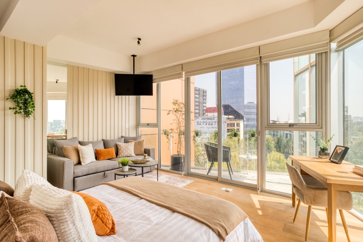 Enjoy one of the most amazing neighborhoods in Mexico City. This place is central and surrounded by restaurants, museums, and iconic landmarks within the city. The area is terrific and very well connected to the whole city. You will love the view from one of the tallest buildings in the city. Undoubtedly, it’s an outstanding place to stay and experience one of the best and biggest cities in the world.