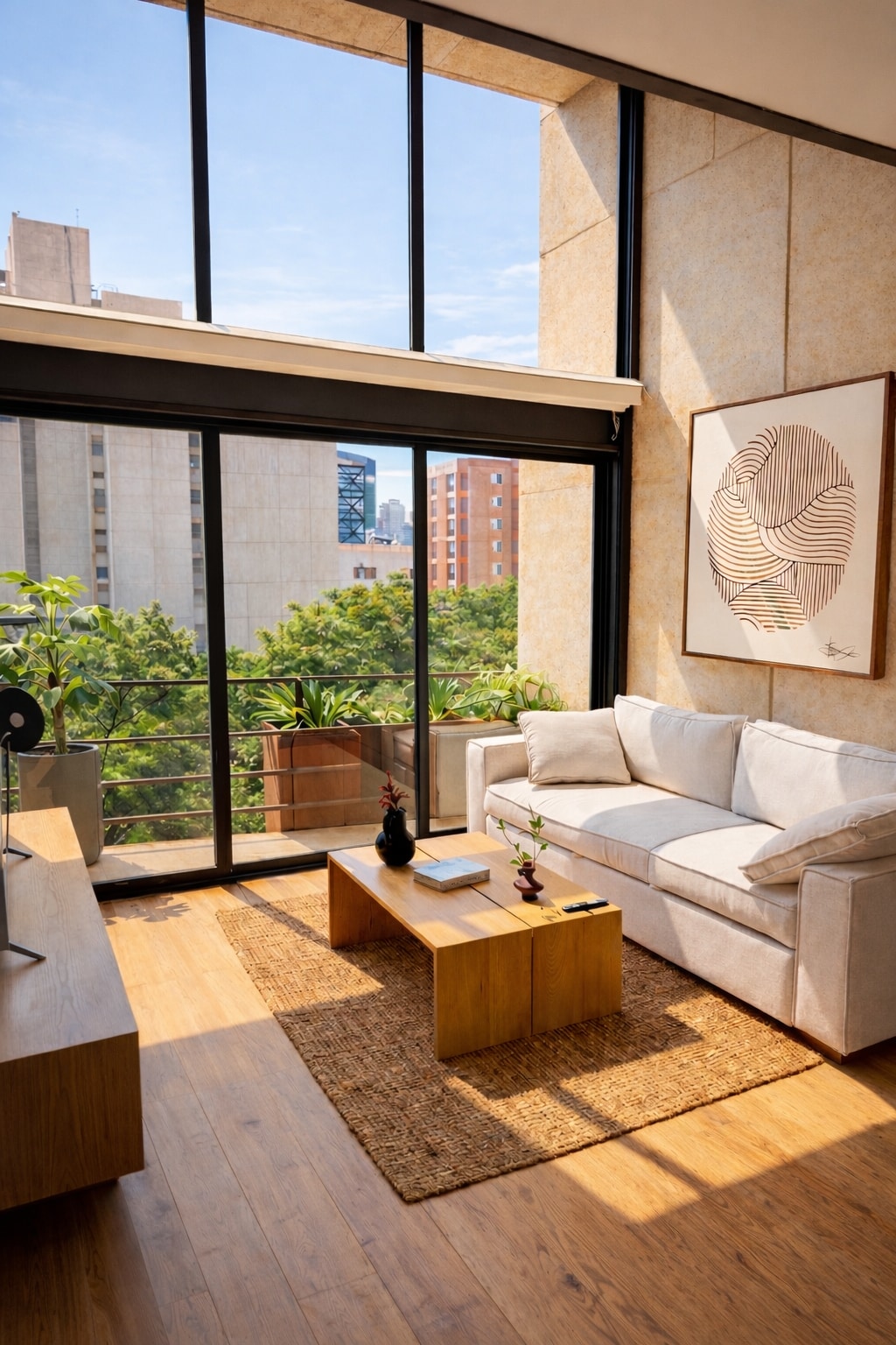 Push open folding big doors first thing in the morning and step onto a green patio for a blast of fresh air and daylight. The big floor to ceiling doors keeps the apt ventilated and fresh. High ceilings with clay and wood beams, bunch of light, and artesanal tiles and wood floor. The place is silent, carefully decorated, very nice for work or just to be here. This new one: https://www.airbnb.mx/rooms/1604605046335668118?guests=1&adults=1&s=67&unique_share_id=4dd1b1c9-fc93-4c94-9ca1-c91cd0256dae