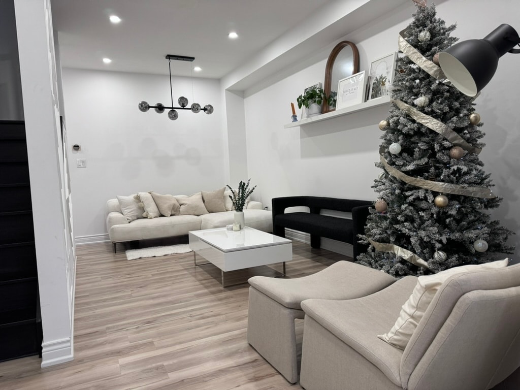COZY and INVITING, this modern suite is in a quiet, family-friendly Ajax neighborhood. Just 10 minutes to Thermea Spa and Ajax GO Station, and a short walk to parks, shops, and groceries. Newly built with deluxe finishes, the 1,000 sq. ft. space includes in-floor heating, an electric fireplace, a spacious sofa, and smart TV with Netflix/Prime. Downtown Toronto is 35–45 mins by car, and Pearson Airport or Mississauga in about 55 mins.