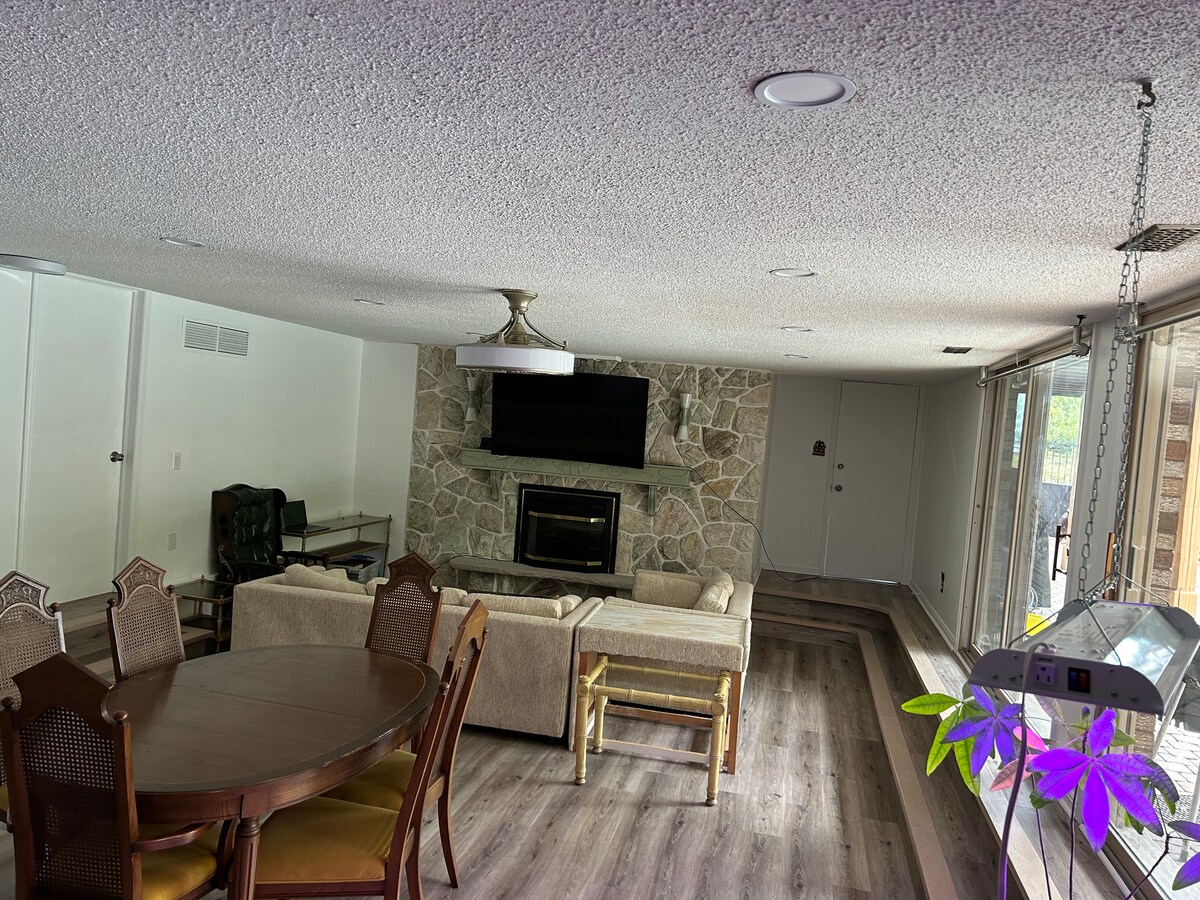 WOOD BURNING SAUNA & HOT TUB⭐️ONE OF A KIND, 1800 sq. ft BARNDOMINIUM on 18 acres of total privacy! Serene, country getaway in the picturesque countryside of Erin⭐️Full-size kitchen,harvest table,spotless bathroom, couch & chairs set infront of the floor to ceiling glass doors⭐️Cozy loft with tv, comfy queen bed & oversized couch. ⭐️Soaring trees & trails,grain bin bar on concrete pad with fire-pit, tables & chairs.Wood deck with patio set.Separate cabin with double bed. You won’t want to leave!