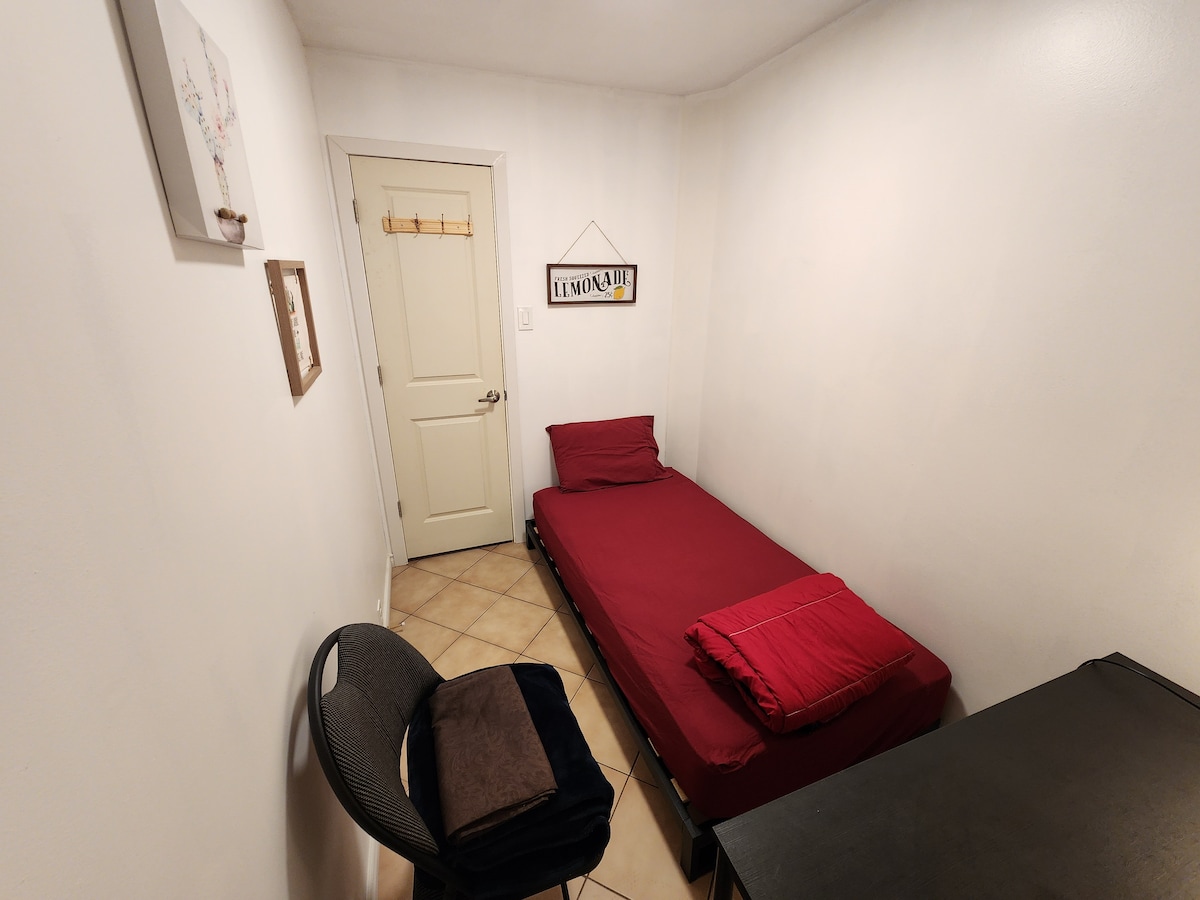 ✔No A/C. A fan is available. ✔No parking. ✔Private room with a door and a lock ✔Clean, quiet, and safe (with strict rules) ✔Check in after 3 pm. Check-out at 10 am ✔I'm a Superhost. 600 reviews, average rating 4.81 ✔2 shared bathrooms ✔A fully equipped shared kitchen ✔Easy check-in at any time with a lock code ✔Responding 24 x 7 ✔Fast Wi-Fi ✔A bus stop is 2 minutes away ✔FREE gym + inside pool nearby ✔15-minute walk to a supermarket (NoFrills) ✔Laundry/storage for an extra fee ✔Park nearby.
