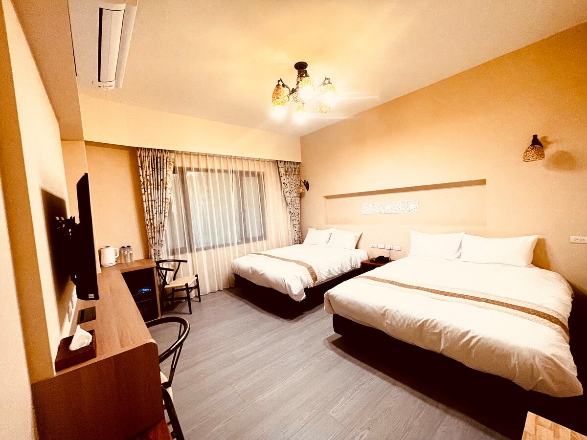 [埔里遇見小美好 202] 位於2樓 完整四人房配置小客廳的豪華套房房型 我們是公寓式獨立套房民宿, 一樓後面有麗人婚紗攝影的工作室 幸運的話可以看到老闆在本民宿拍照唷 :) 本民宿無櫃台服務人員 採自助入住/退房 入住時間15:00/ 退房 11:00 (15點後皆可依照自己行程安排自由入住) 因應新冠肺炎提供75%酒精供住客在房內使用 也準備了防疫小物(乾洗手及酒精濕紙巾) 讓大家方便帶出門出外使用