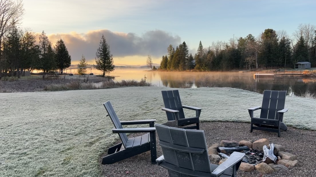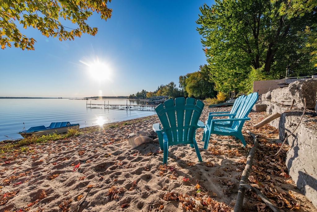 Relax with family & friends and enjoy this beautiful updated lakefront oasis in every season:). Spacious, bright open concept, lrg deck, fireplace, AC, radiant heat, smart TV, 100 ft waterfront, private beach!:) West facing, spectacular sunsets, panoramic views! Spring/ Summer hiking, fishing, camp fires and paddling! Amazing swimming, boating & memories to be made:) Winter skating, cross country & nearby downhill skiing, snowshoe, snowmobile (OFSC trails), ice fish, campfire s’mores & more!