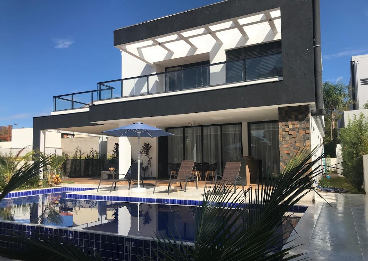 Spacious house, on the edge of the dam, in a gated community with only 28 lots. A project carried out by Ambienta Arquitetura (prestigious by the magazine Arquitetura e Construção and others) with 3,900 m2 of land, 516m2 built, a standard pool, and a smaller heated pool (electric heater), trampoline, slackline, kayak, stand up paddle and barbecue. 5 suites (all with air conditioning) and another toilet. Capacity to comfortably accommodate 14 people plus a baby.