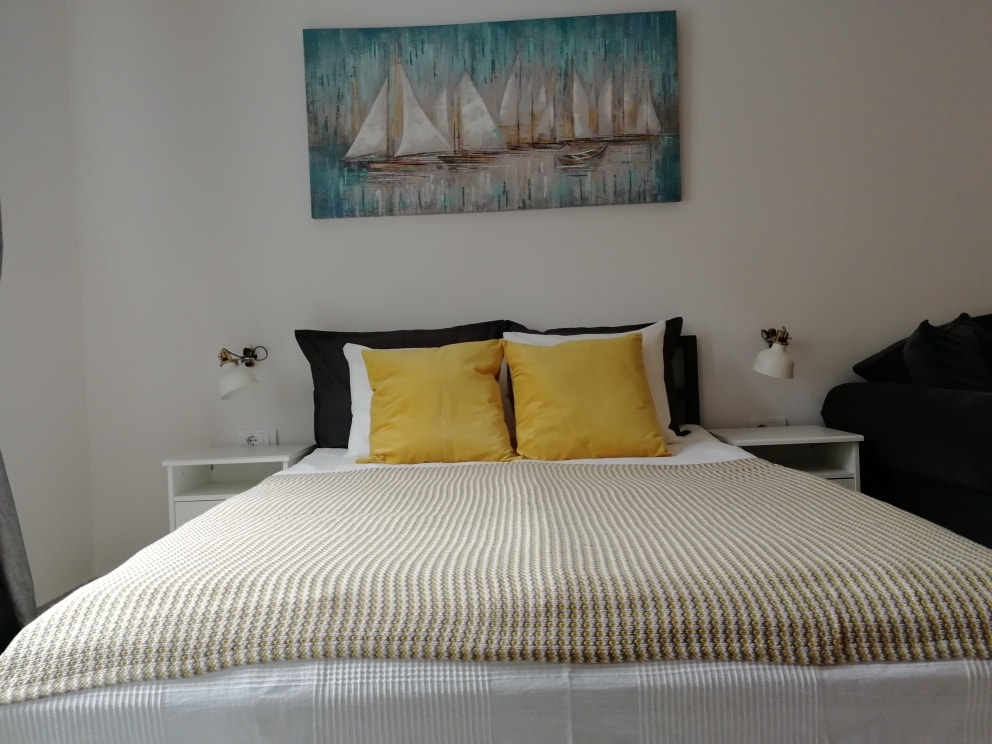 The apartment is full renovated a few months ago and everything is brand new. In the bedroom there is a large comfortable double bed and one big sofa bed in the living room. All in discreet led light. In the kitchen you can enjoy a modern flat-screen cooker, oven, refrigerator with freezer, dishwasher and washing machine and a large bar table. The bathroom is glazed with marble ceramics, it is very compact and clean. The bathroom is equipped with a hairdryer, towels, hygiene sets.
