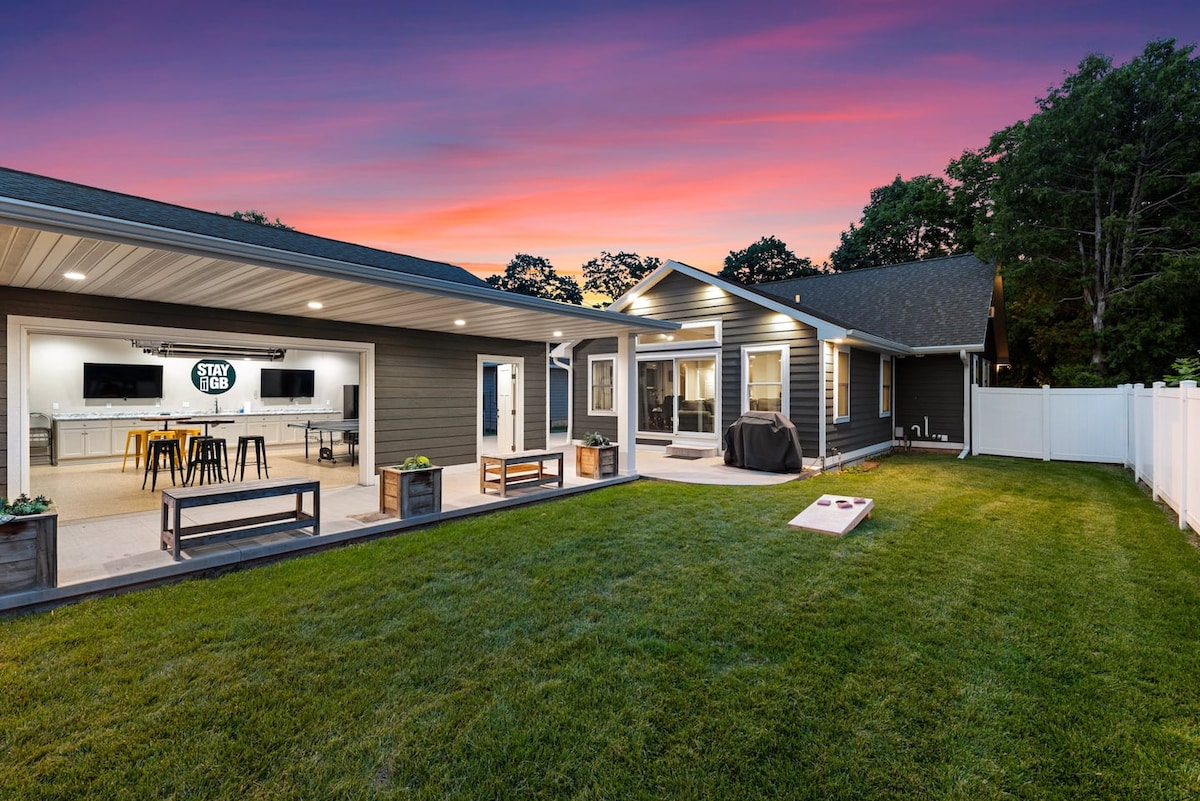 Pick this place at the center of it all in Green Bay! A little over a mile to Lambeau Field and the Resch Center, you can tailgate or live like Lombardi in the retro basement bar before walking to the game or concert. With smart technology, modern furnishings and central air inside, as well as a patio, grill, and fire pit outside, enjoy this getaway to explore Green Bay or as a home base to Door County.