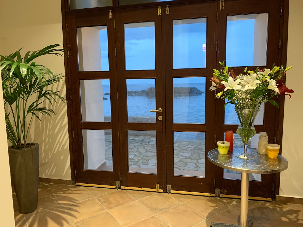 Η σουιτα βρισκεται μπροστα στην θαλασσα , υπαρχει χωρος που ο επισκεπτης μπορει να κατσει και να απολαυσει την θεα , και το απιστευτο ηλιοβασιλεμα,ο εξωτερικος χωρος μπροστα απο την σουιτα εχει τραπεζοκαθισματα και λειτουργει ως καφε μπαρ , μπορει να χρησιμοποιηθει απο τους επισκεπτες μας αλλα και απο περαστικους , στον εξωτερικο χωρο απο την σουιτα δεν παιζει μουσικη οποτε ειναι ησυχα , απο τις 20 Οκτωμβριου μέχρι τις 31 Μαρτίου δεν λειτουργεί το μπαρ οπότε ο χώρος είναι για τα δωμάτια