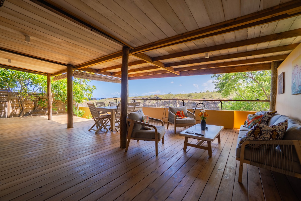 La saison des baleines est lancée !!! Ile de la Réunion, est-ce votre tour? Natura Lô est un meublé tout confort à mi hauteur du chemin Dubuisson à St Leu. Cuisine équipée, grand séjour, véranda donnant sur une vue magnifique sur le lagon et 3 chambres ventilées, climatisées, avec rangements. Le linge de maison est fourni. La salle de bains est à baignoire d'angle, WC séparé. Le jardin créole donne sur la piscine, sa terrasse, et ses transats. A vos réservations.