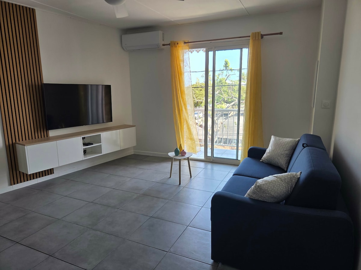 Rénovation 2026 - Appartement 2 pièces de 44 m² + terrasse, en open space classé 3*** avec grande cuisine, salon tv, douche italienne. Le Letchi à Boucan Canot vous accueille pour court ou long séjour au calme, vue sur la végétation tropicale, à 500 m de l'une des plus belles plages de l'île, idéal 4 adultes ou couples avec 1 ou 2 enfants. Parking sécurisé. Plage surveillée et sécurisée et grande piscine naturelle d'eau de mer. Situation privilégiée pour visiter l'île. Lit bébé nous consulter