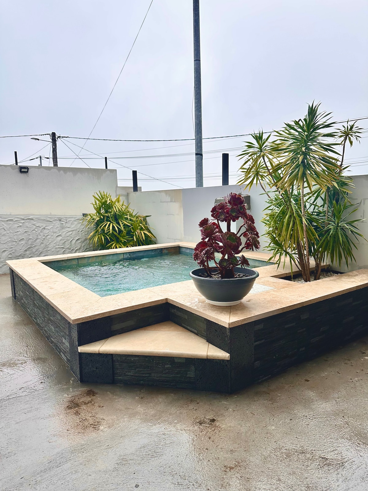 Villa moderne tout équipé avec jacuzzi/mini-piscine de 2,70mx2,70m , 2 chambres avec lit King-size 160x200 dont une sur-mesure équipé de climatisation, armoire de rangement et télévision. Salle de bain confort avec douche à l'italienne, WC moderne. Salon équipé de fauteuil, télévision et table de repas. situé dans un endroit calme, à 10 minute de saint pierre et de la plage avec jacuzzi privatif uniquement pour votre logement, parking.