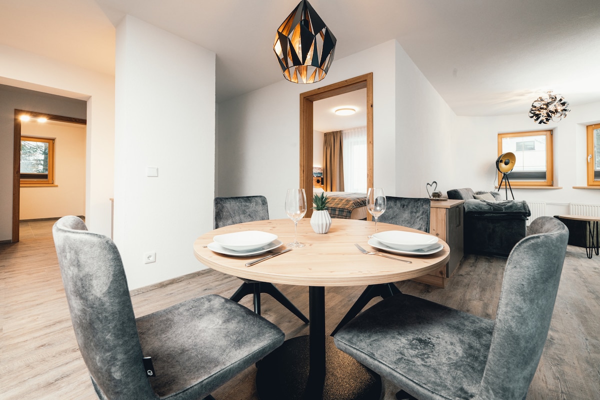 Inmitten der Tiroler Zugspitzarena liegt das neu gebaute Apartment Das Apartment in absolut bester Ski-in/Ski-out Lage in Berwang. Die Wohneinheiten ist ca. 110m² groß und verfügt über eine großzügige Terrasse. Das exklusive Apartment ist im modernen alpinen Stil eingerichtet. Die Unterkunft verfügt über vier Schafzimmer, drei Bäder, eine vollausgestattete Küche und einen Wohn-Essbereich. Die Highlights sind die Panorma-Sauna mit Bergblick auf der 85m² großen Terrasse und der Sichtdachstuhl.