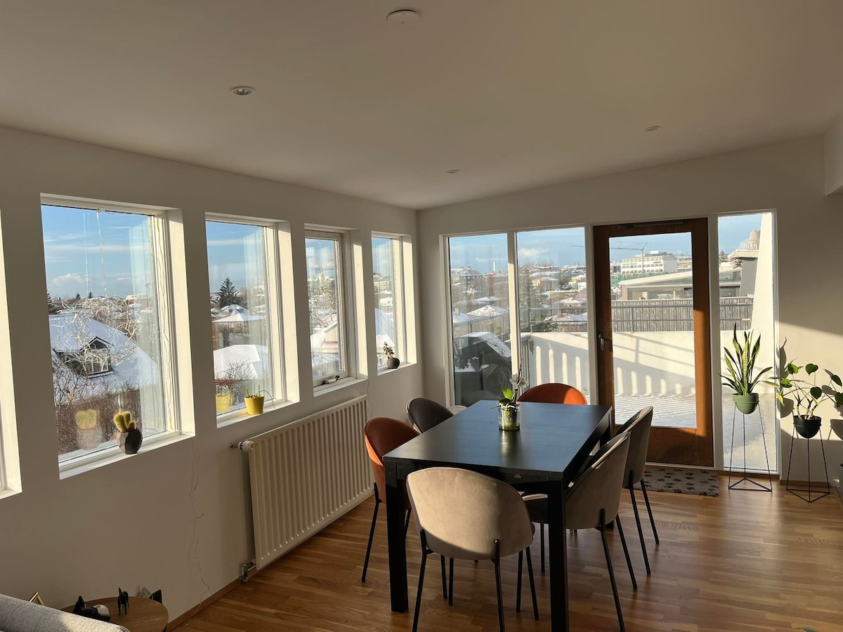 Spectacular view and amazing location for your Reykjavík stay. Enjoy the amazing Ocean View from top floor! Perfect for a couple, small group of friends or a family with children. Located on the top floor of the building. No worries we do have an elevator! The property is located at Hlemmur Square which is close to all the main attractions of Reykjavík city and right by the Hlemmur hub for transportation and a fantastic food hall across the street. Renovated in year 2024, brand new appliances.