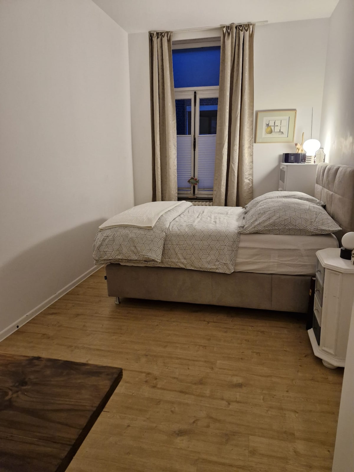 Sunny, exclusive 1-room apartment in Cologne city center for 1-2 people; open floor plan, underfloor heating, comfortable bed (1.40 x 2m), stylish living area, kitchen, high-quality built-in furniture; modern bathroom design with daylight / exclusive furnishings; high-speed WiFi up to 100 mbit/sec; elaborate lighting design 3 min. to the shopping streets, restaurants and bars on the doorstep, 800 meters to the cathedral, freeway A57 by car in 5 min. Bookings of 90 days or more on request.